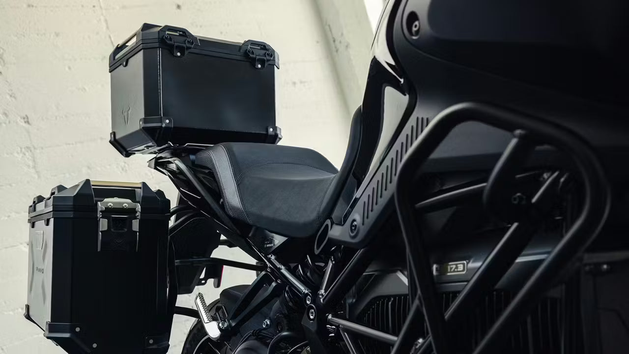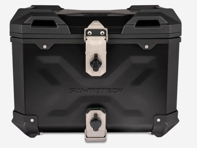 The complete Top Case, Rack and Mount for 2023-present Adventure models of Zero Motorcycles -DS (2024-Present), DSR (2024-Present), DSR/X (2023-Present). Includes 10-08341 Top Box Mount Kit plus SW Motech Black Aluminium Top Box 38l. Easily accommodates motorcycle helmet.